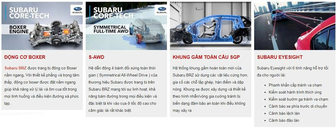 • Động cơ Boxer phẳng: Khác biệt lớn nhất của Subaru là kết hợp AWD với động cơ Boxer đặt ngang, giúp trọng tâm xe thấp và cân bằng hơn.
