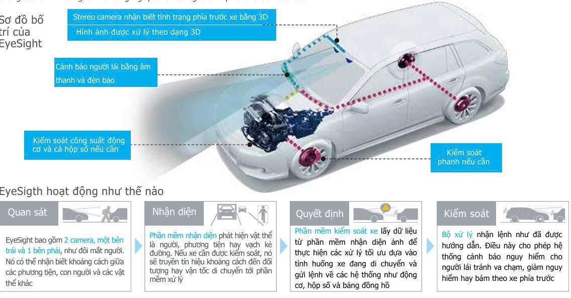 EyeSight không chỉ dừng lại ở việc phanh tự động, mà còn là tổ hợp nhiều tính năng an toàn chủ động thông minh, bao gồm: