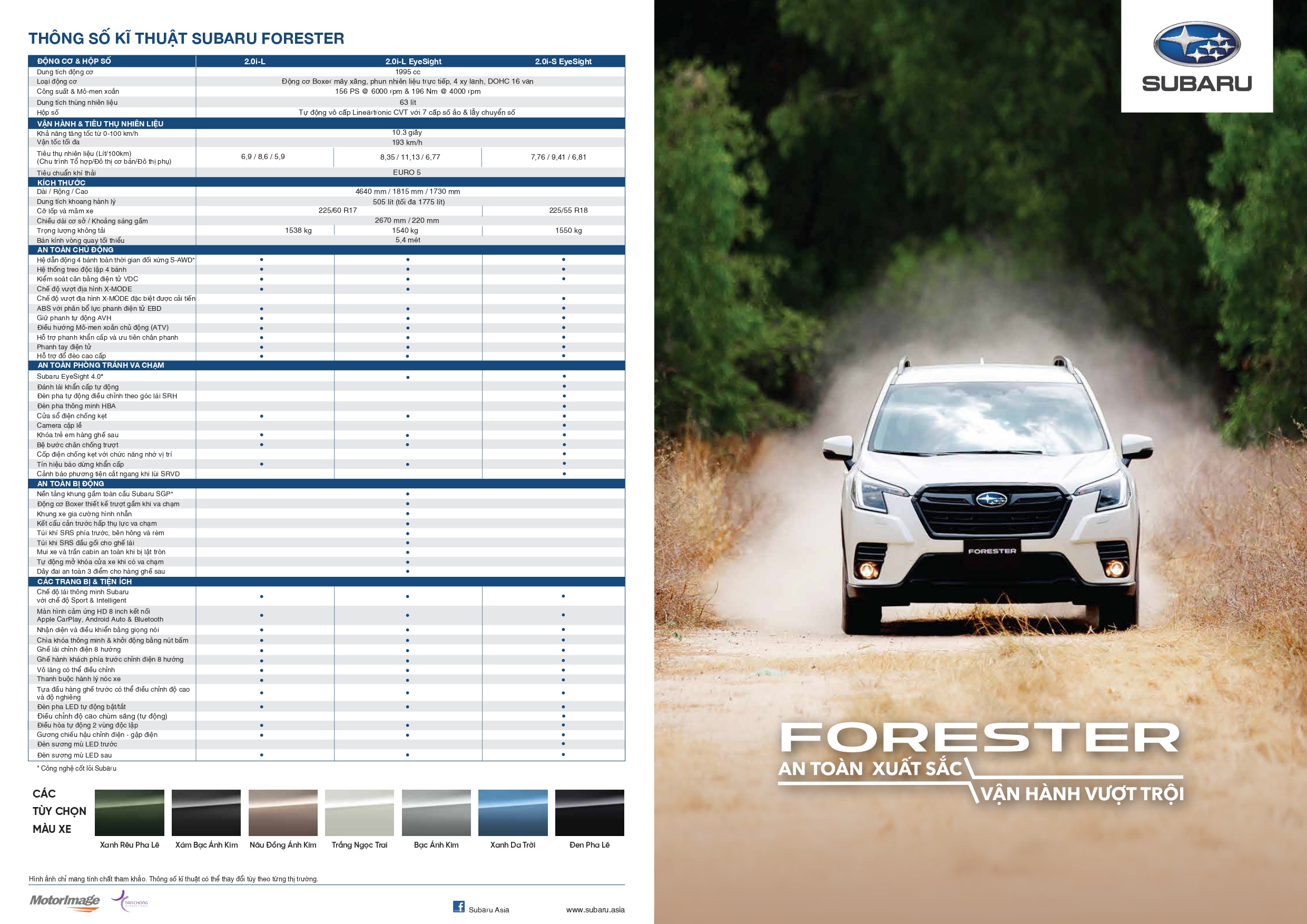 Bảng thông sô kỹ thuật xe ô tô Subaru Forester 2.0 I.S EyeSight